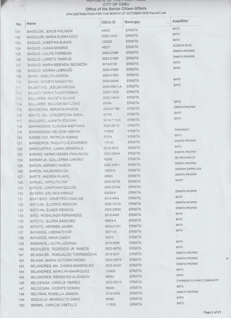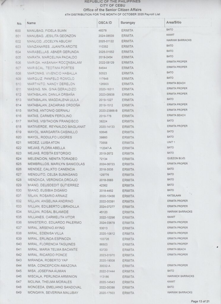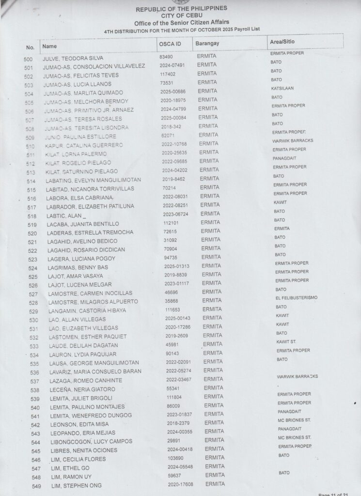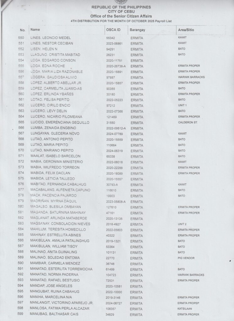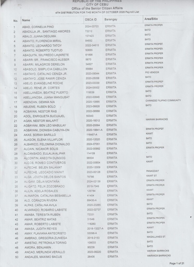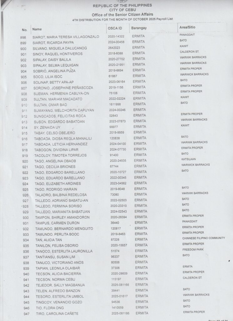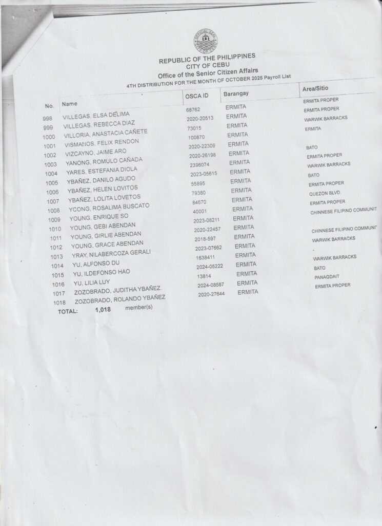Sa tanan nga senior citizens nga maka-dawat ug β‚±1,000 cash karong Oktubre 25, 2025 (Sabado) β€” diha na ang inyong gipangpaabot nga listahan!