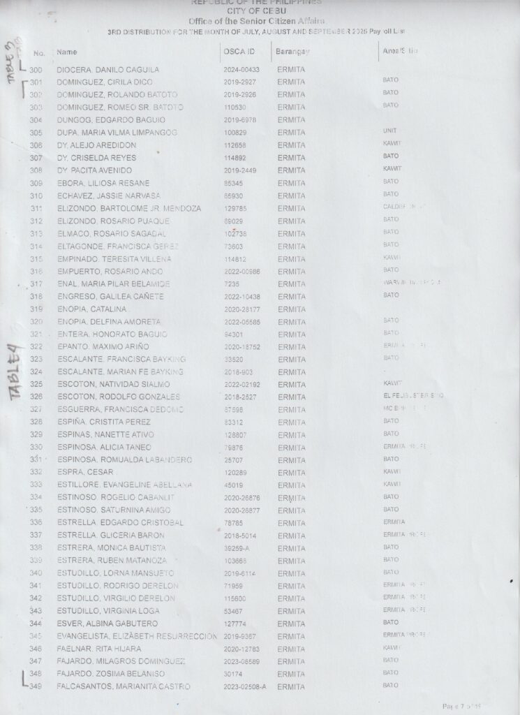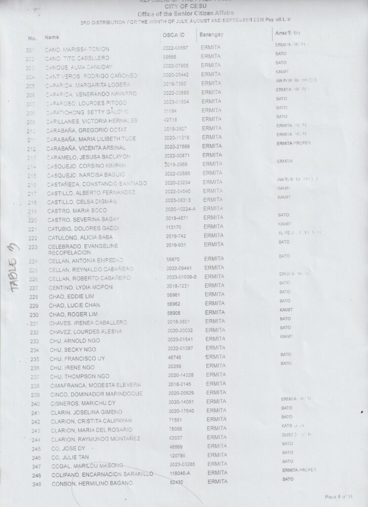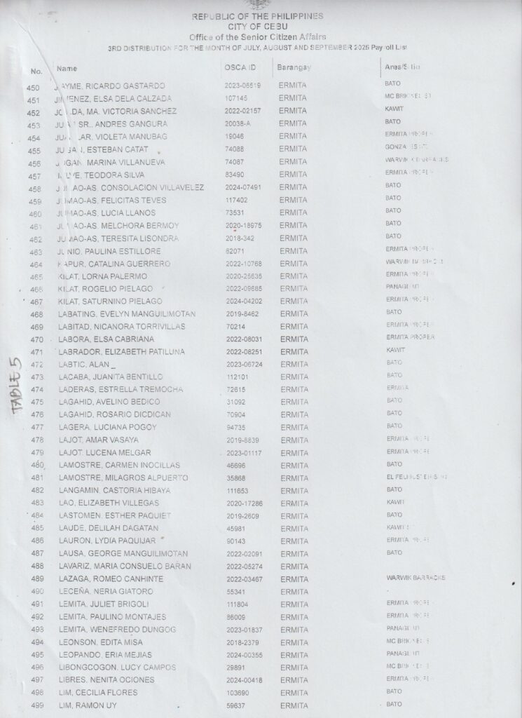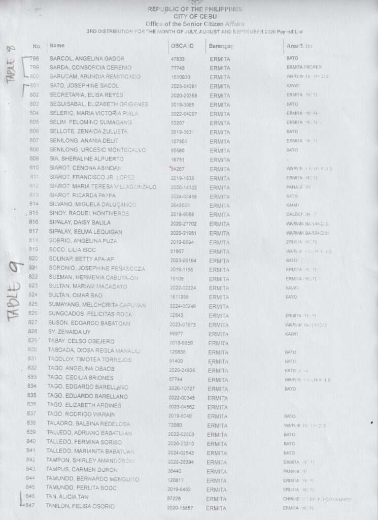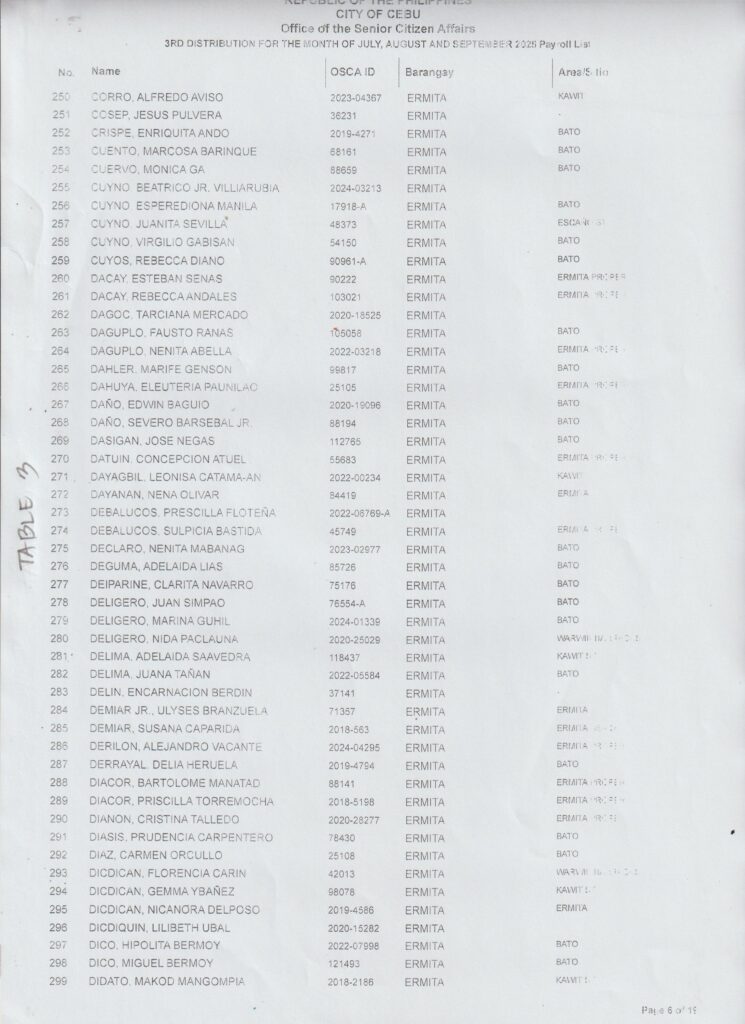 Ang pamaagi sa atong Financial Assistance Distribution magbasi sa inyong Payroll Number ug Table Number: