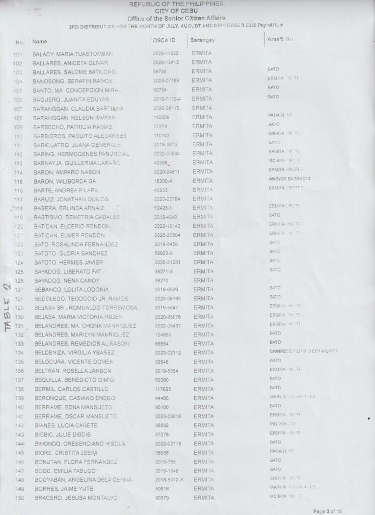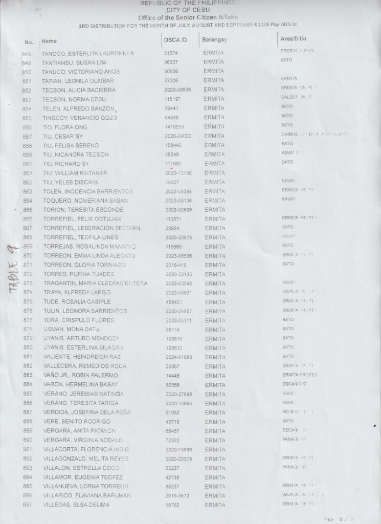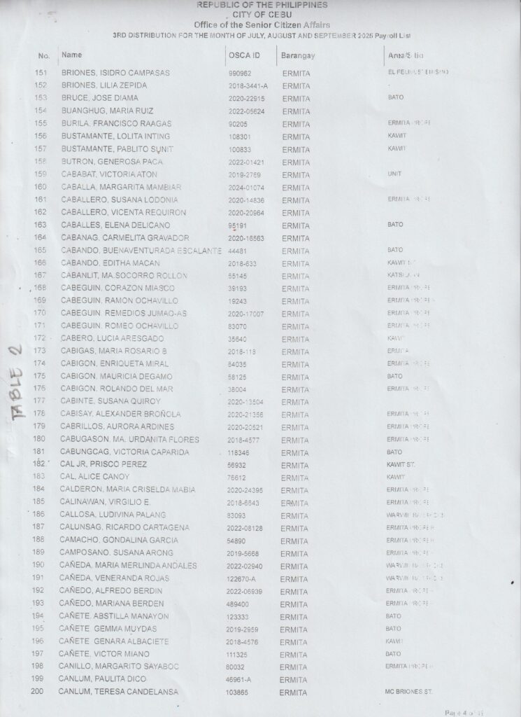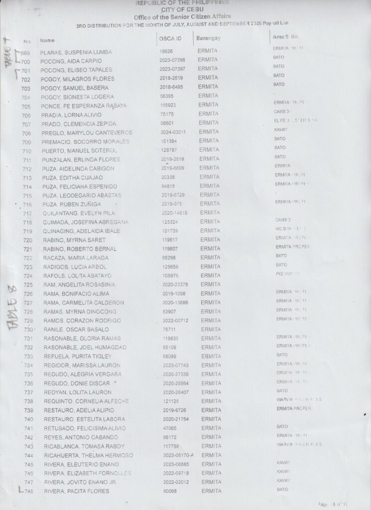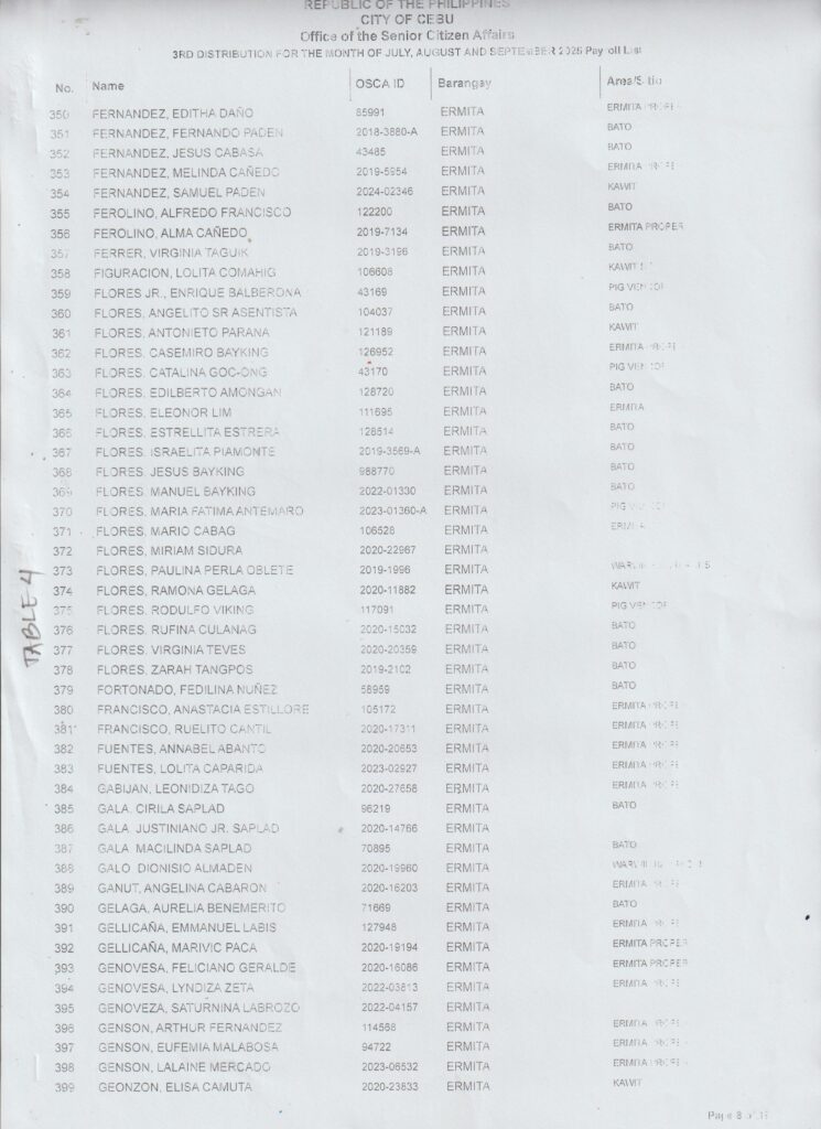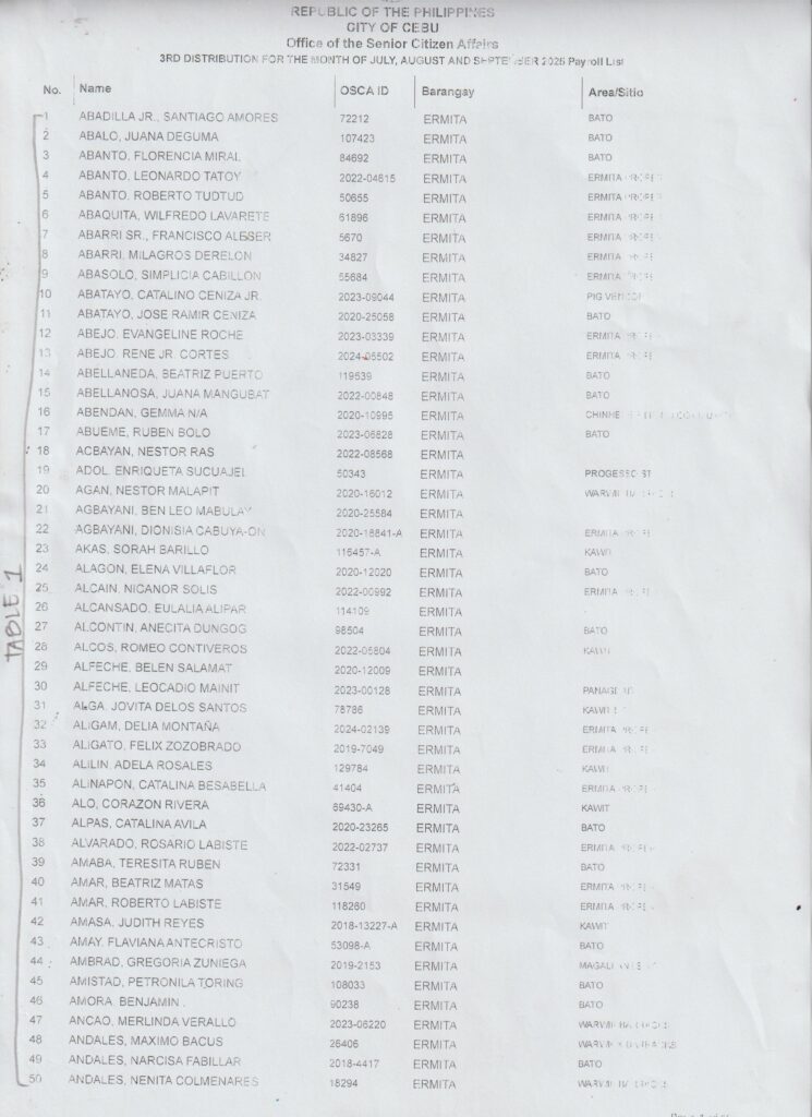 Ang pamaagi sa atong Financial Assistance Distribution magbasi sa inyong Payroll Number ug Table Number: