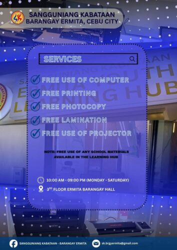 The Sangguniang Kabataan of Barangay Ermita proudly offers FREE services at the Learning Hub to…
