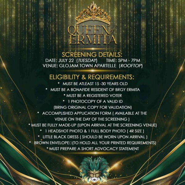 𝐐𝐔𝐄𝐄𝐍 𝐎𝐅 𝐄𝐑𝐌𝐈𝐓𝐀 𝟐𝟎𝟐𝟓 — 𝐒𝐂𝐑𝐄𝐄𝐍𝐈𝐍𝐆 𝐃𝐀𝐘 Calling all queens of Barangay Ermita! Do you…