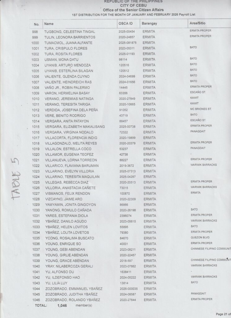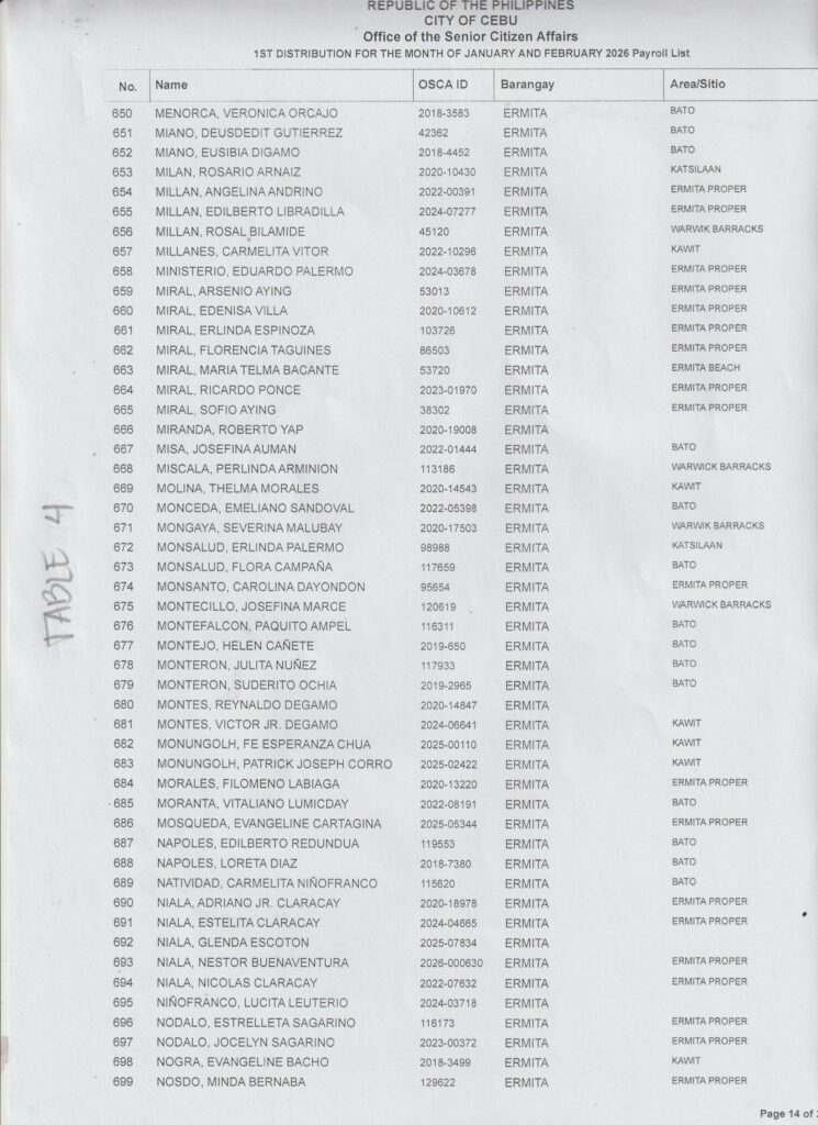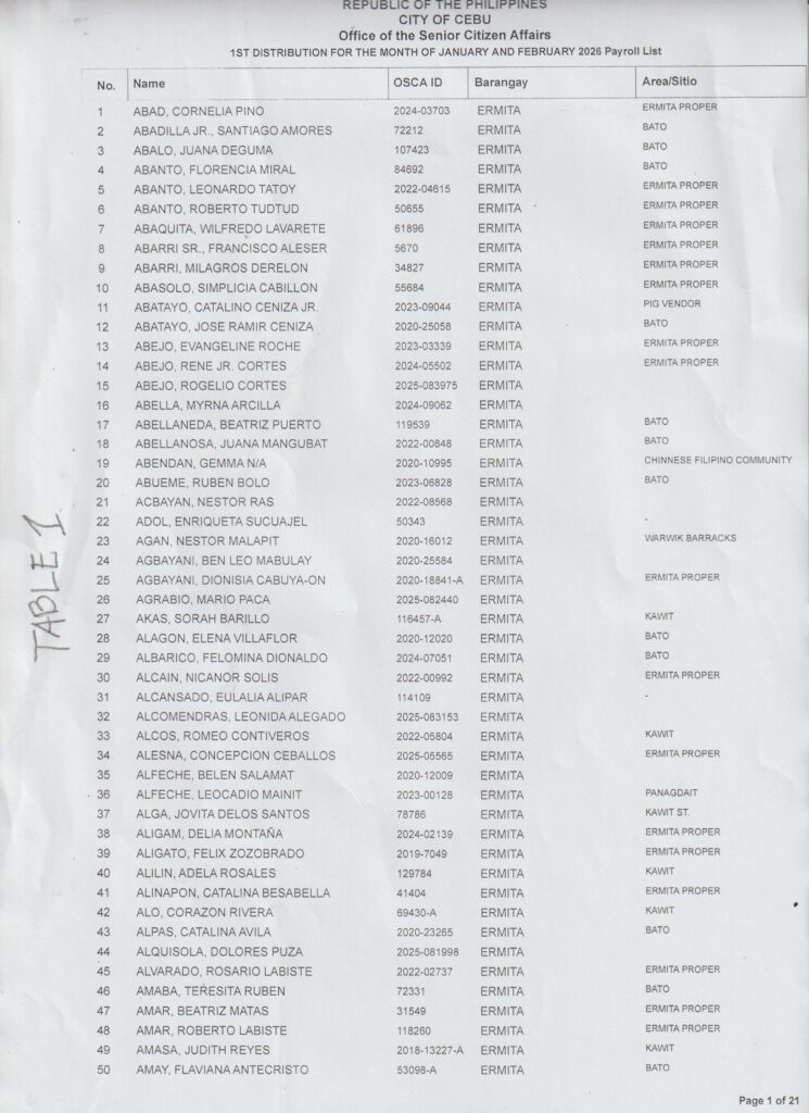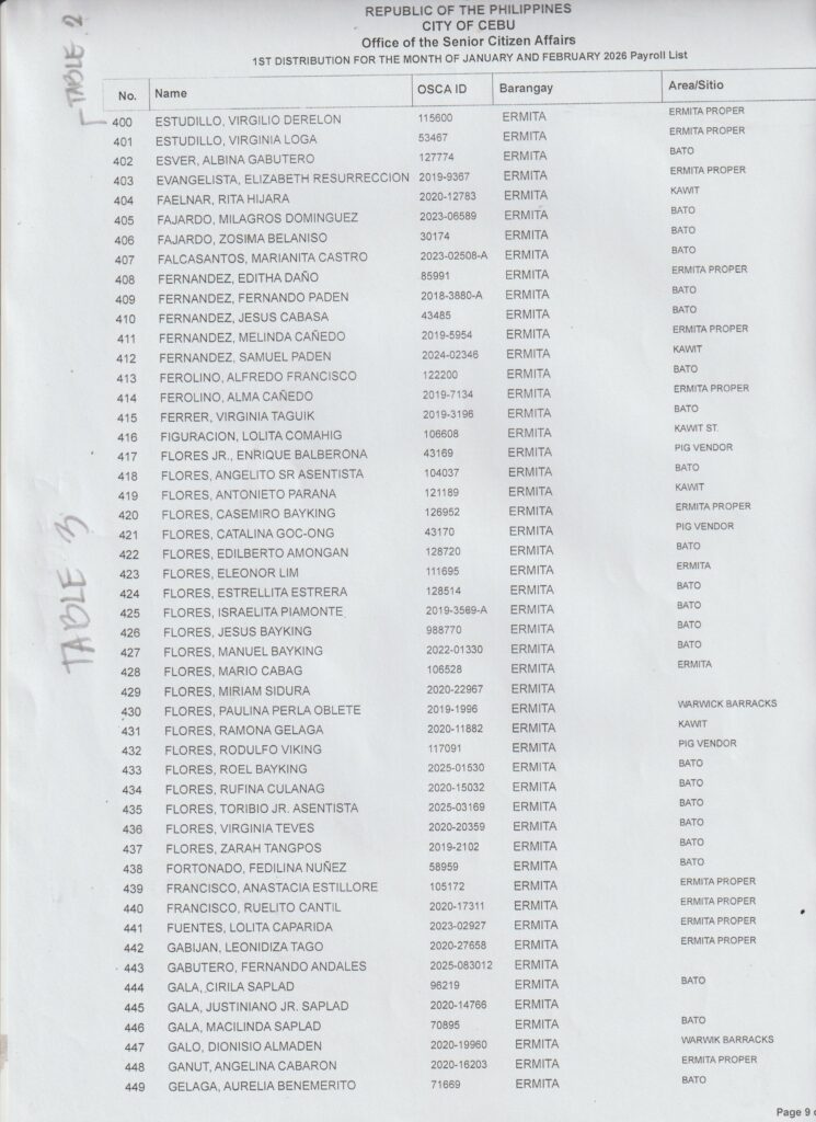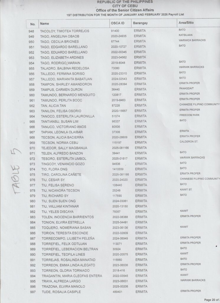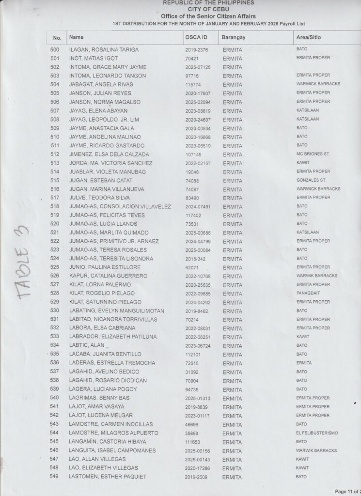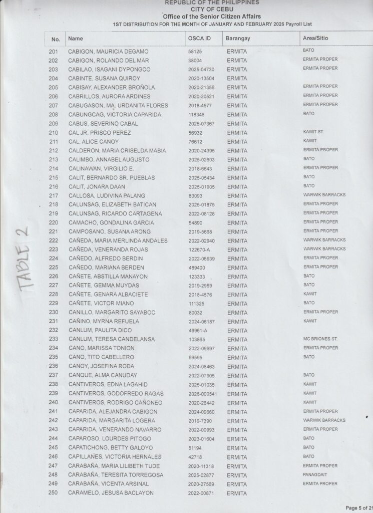 Ang paghatag sa financial assistance kay ibase sa inyong Payroll Number ug Table Number. Palihog tan-awa una inyong Payroll Number aron makahibalo kung asa nga Table mo mosulod.